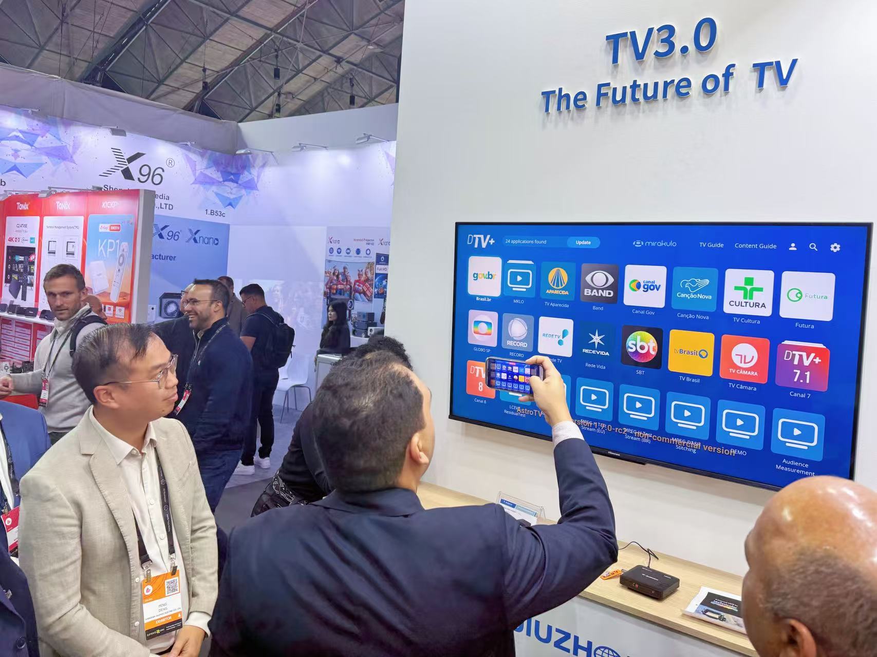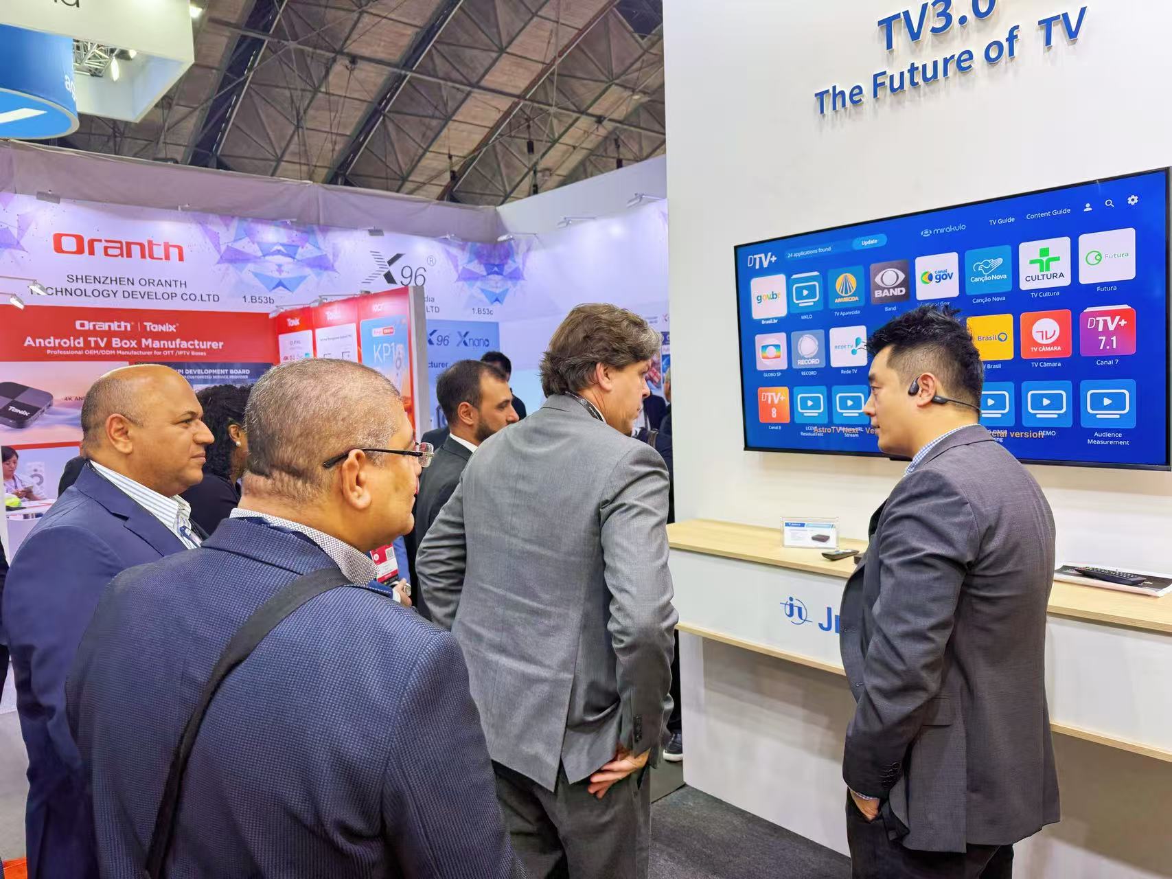 與此同時,最新研發(fā)的巴西下一代數(shù)字電視標(biāo)準(zhǔn)TV 3.0機(jī)頂盒引發(fā)高度關(guān)注 — 巴西通信部部長Frederico de Siqueira Filho駐足九洲展位,認(rèn)真聆聽海外銷售團(tuán)隊對該產(chǎn)品的講解。該產(chǎn)品憑借 “多標(biāo)準(zhǔn)兼容 + 超高清體驗 + 場景適配” 的核心優(yōu)勢脫穎而出:一方面解決了不同區(qū)域信號接收的適配難題;另一方面搭載 Andriod 4K 系統(tǒng),以超高清音畫技術(shù)精準(zhǔn)還原細(xì)膩光影細(xì)節(jié)與立體聲音效,再結(jié)合多元內(nèi)容池的資源支撐,可靈活滿足家庭集體觀影、個人碎片化追劇等多樣化需求,成為本次展會中體現(xiàn) “技術(shù)適配性 + 用戶體驗感” 的代表性產(chǎn)品。