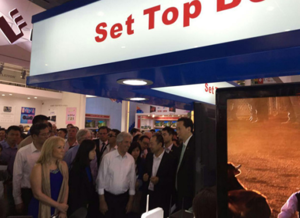 10月17日,展會(huì)第三天,烏拉圭總統(tǒng)塔瓦雷·巴斯克斯蒞臨九洲展位。集團(tuán)公司副總經(jīng)理霞暉介紹了九洲的整體業(yè)務(wù)情況。