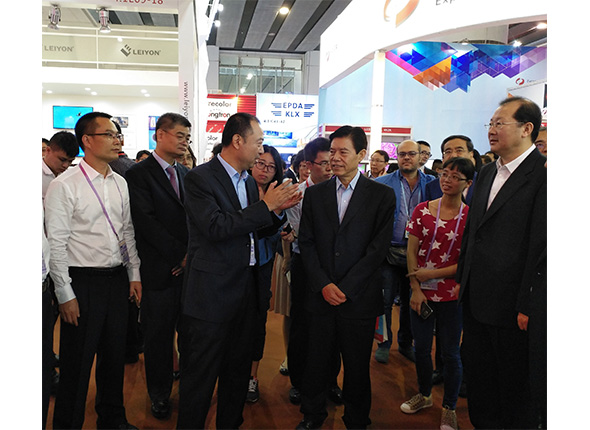 中共中央政治局委員,國(guó)務(wù)院副總理汪洋在中共中央政治局委員,廣東省委書記胡春華的陪同下蒞臨九洲廣交會(huì)展臺(tái)