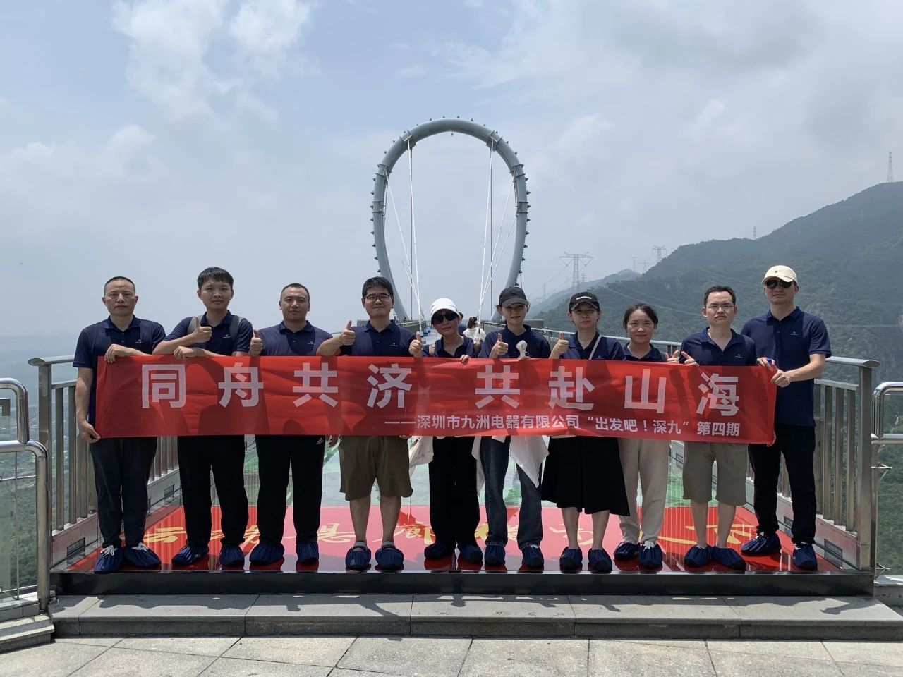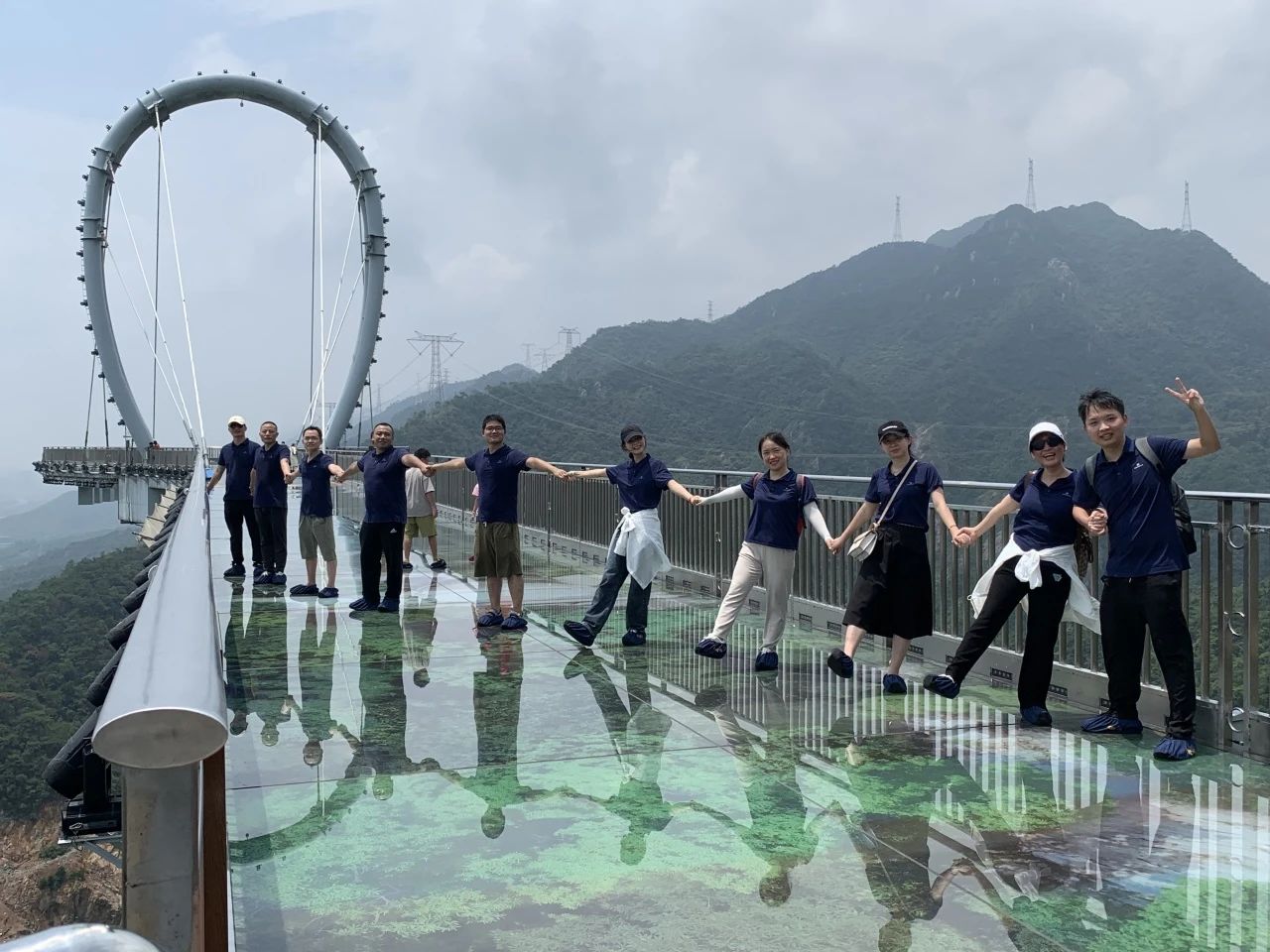在藍(lán)天白云的映襯下,玻璃棧道宛如一顆璀璨的明珠鑲嵌在翠綠的山林之中;人事行政部的同事們毫不畏懼,攜手向前,繼續(xù)挑戰(zhàn)極限,走在玻璃棧道上,隨著每一步的前行,山谷與綠樹都在視野中展現(xiàn)得如詩如畫,仿佛置身于云端,讓大家感受到了大自然的壯麗恢弘與人類的智慧結(jié)晶。