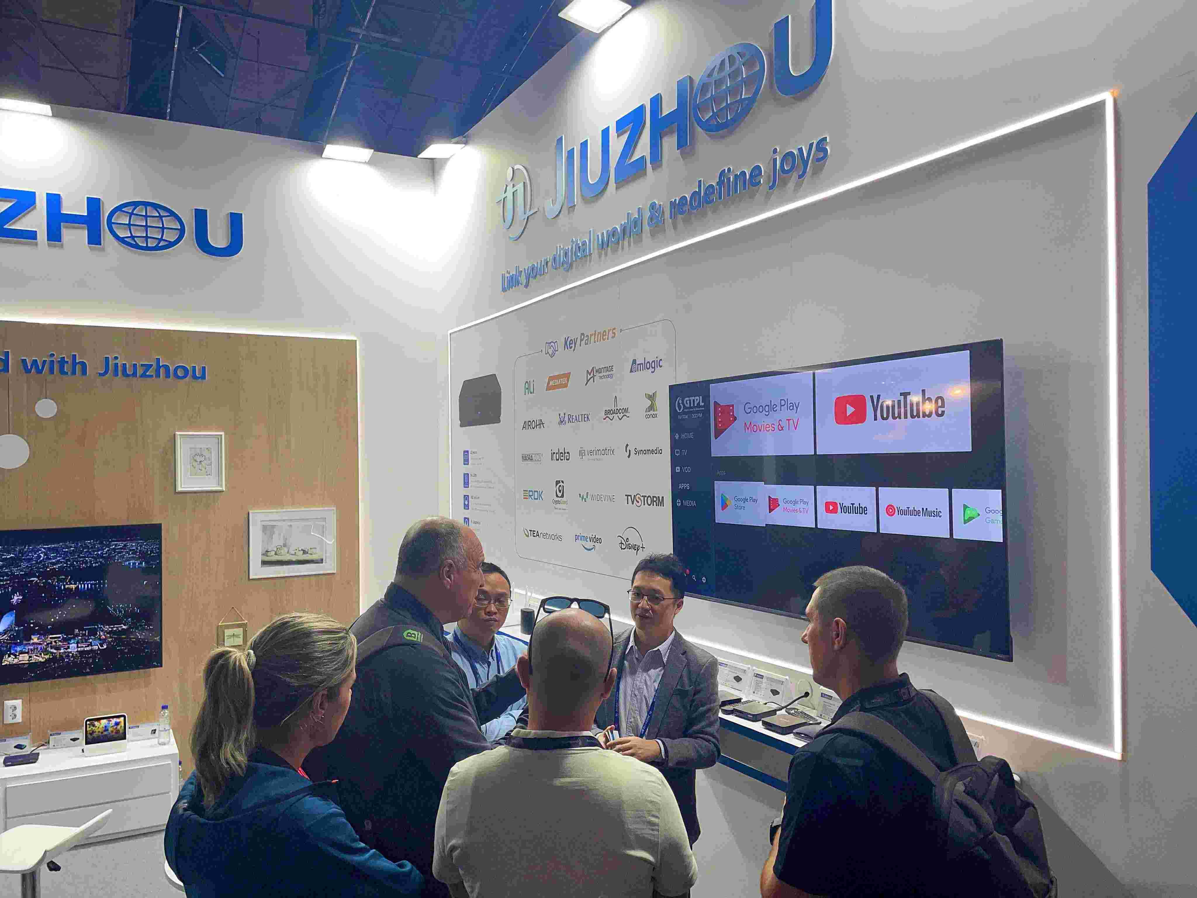 深圳九洲電器作為全球領(lǐng)先的數(shù)字音視頻融合智能終端提供商,本次展會(huì)公司總經(jīng)理韓高典親自帶隊(duì)遠(yuǎn)赴荷蘭,參展的產(chǎn)品不僅有Android TV 智能機(jī)頂盒,RDK機(jī)頂盒,5G CPE,WiFi-6路由器等專(zhuān)業(yè)級(jí)數(shù)字終端產(chǎn)品,還有8k超高清機(jī)頂盒和智能音箱等新品亮相,向廣大觀眾展示了多維度、多功能的智慧融合終端解決方案。
