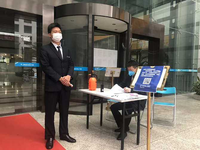 復(fù)工期間,全體員工需先經(jīng)過測量體溫、噴灑消毒液后才可以進入辦公區(qū)域。公司全力保障防疫物資到位,對防疫物資的使用管理進行歸口管理、實名登記領(lǐng)用;并設(shè)立隔離場所,對隔離場所實行專人管控,避免可能的交叉?zhèn)魅?;且對九洲電器大廈進行每日消毒作業(yè)。