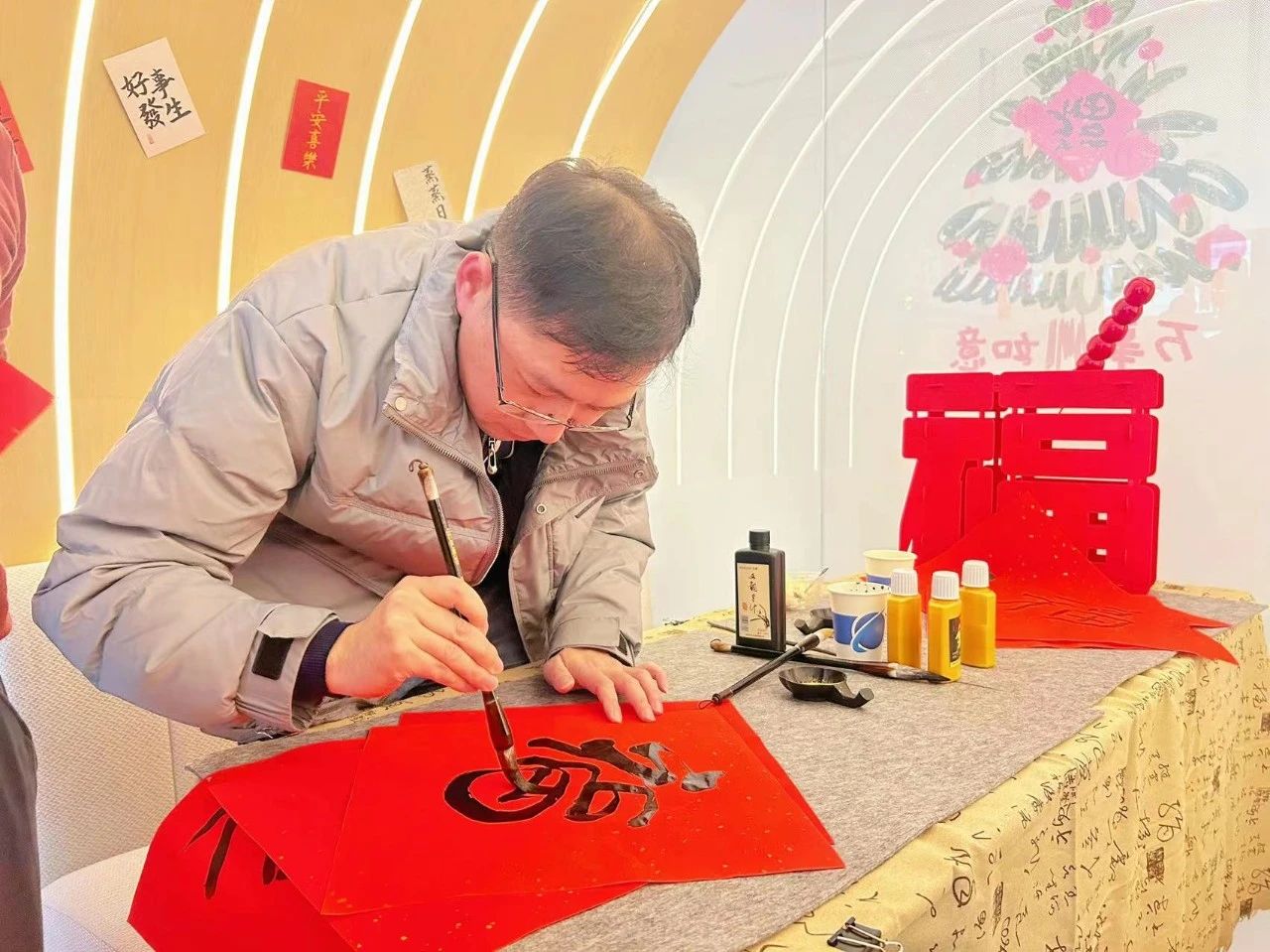 “心中有丘壑,筆墨作山河”,大家在鋪開的春聯(lián)紙上,寫下蒼勁有力、瀟灑自如的福字,將濃濃的情誼、真誠的祝福,傾注于字里行間。