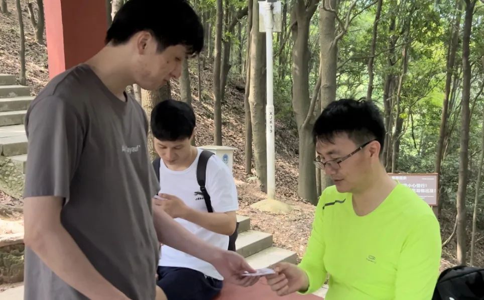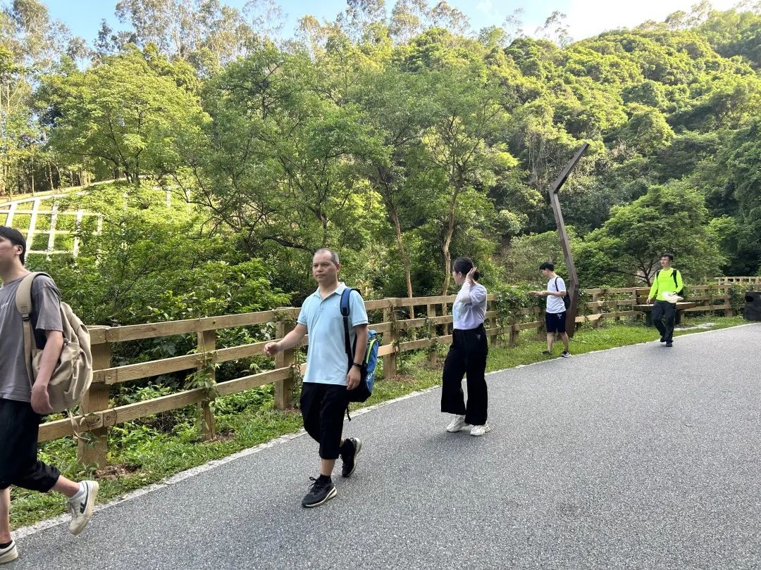 當(dāng)日上午,全員集合完畢,大家伴著明媚的陽(yáng)光,互相扶持,互相幫助,邊走邊感受綠色生態(tài)氣息,贊嘆革命先輩奮斗的不易,途徑風(fēng)門坳、大陽(yáng)臺(tái)山頂、秋菊亭,歷時(shí)7小時(shí),最終到達(dá)“勝利大營(yíng)救”主題紀(jì)念碑前。