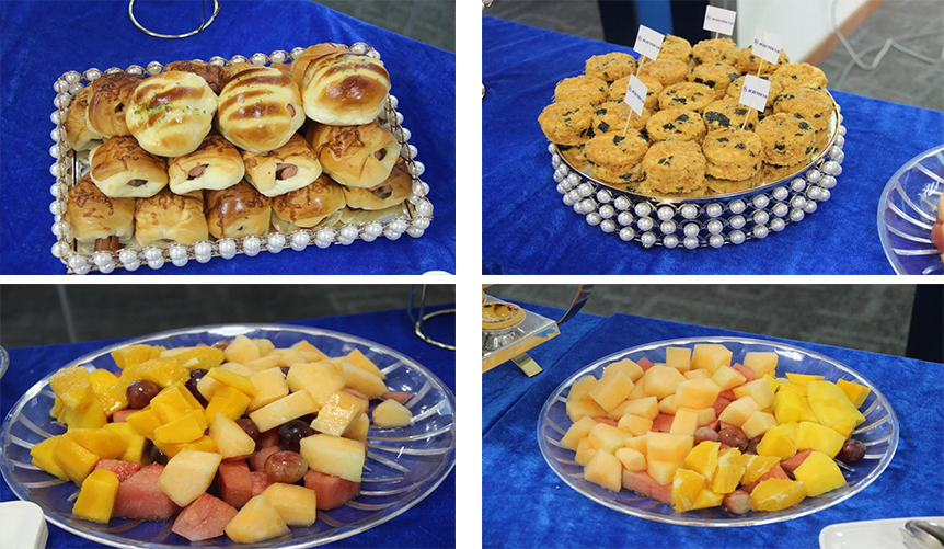 現(xiàn)場不僅有精彩的干貨培訓(xùn)課程,更有美味佳肴讓人垂涎欲滴,深圳九洲為大家提供美味茶歇,課間休息時(shí)間,學(xué)員們前往茶歇區(qū),分享美食,喜笑顏開。