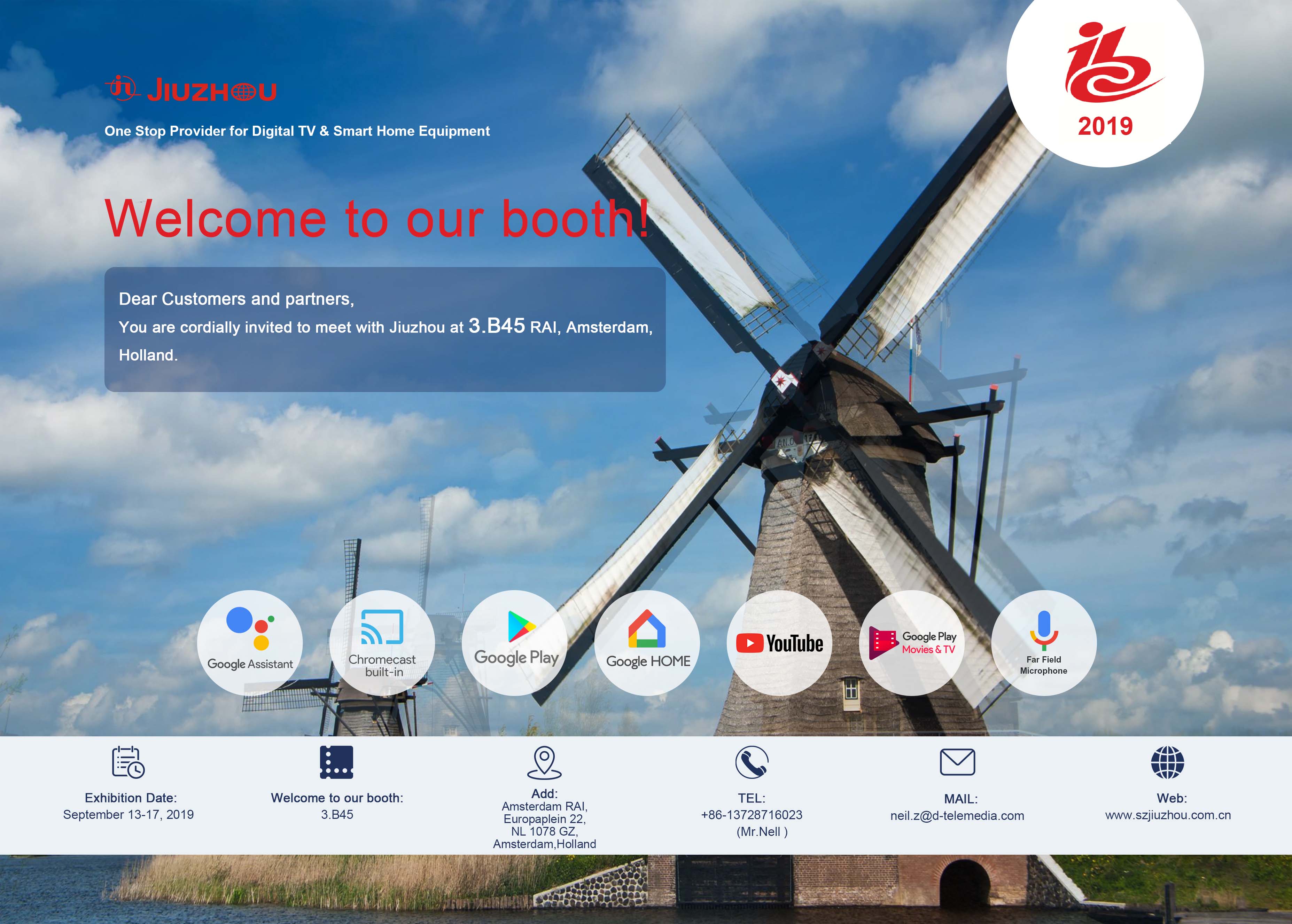 2019年荷蘭廣播電視設(shè)備展覽會(IBC),將于2019年9月13-17日在荷蘭阿姆斯特丹國際展覽中心舉行。深圳九洲電器將攜數(shù)字電視與智能家居產(chǎn)品亮相荷蘭IBC展會。