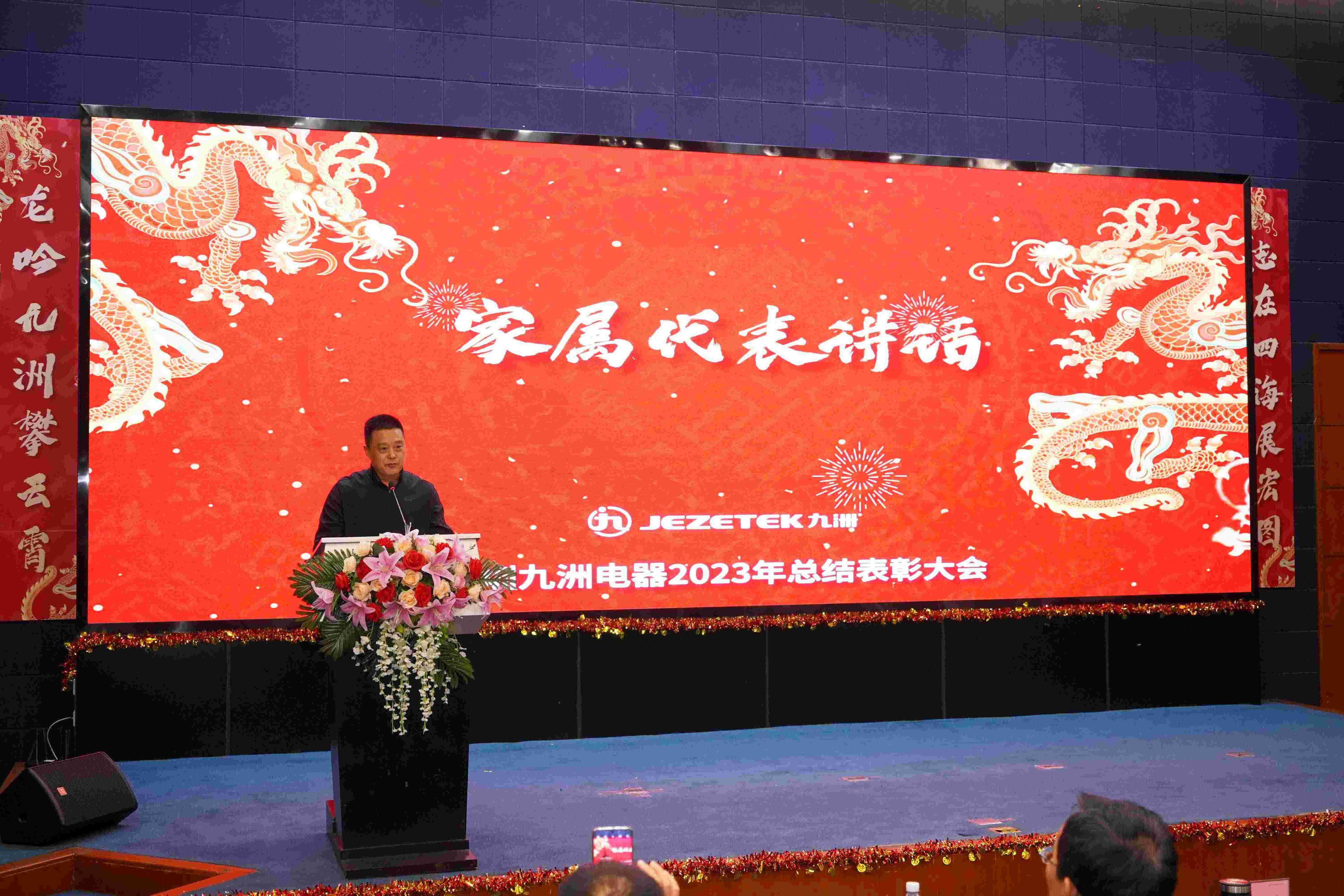 成績的取得離不開廣大員工的辛勤付出和集體智慧,更離不開九洲家屬們的默默奉獻(xiàn),家企攜手同心,共筑美好未來,公司數(shù)字產(chǎn)品線副總經(jīng)理辛巍的父親作為家屬代表發(fā)言。他對公司給予辛巍發(fā)展平臺和機(jī)會表示感謝,對公司取得的驕人成績而自豪,表示將一如既往地支持工作,相信公司在領(lǐng)導(dǎo)的帶領(lǐng)下,在大家的共同努力下,將會取得更大的成績。